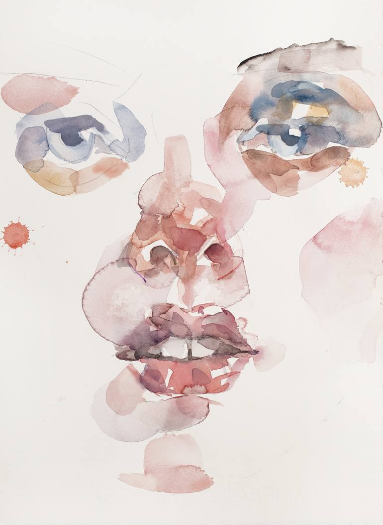 emotional layers is a way of representing feelings through overlapping and transparent layers of color that build the supporting structure of the face. Watercolor on cold pressed paper 300g warm traditional white