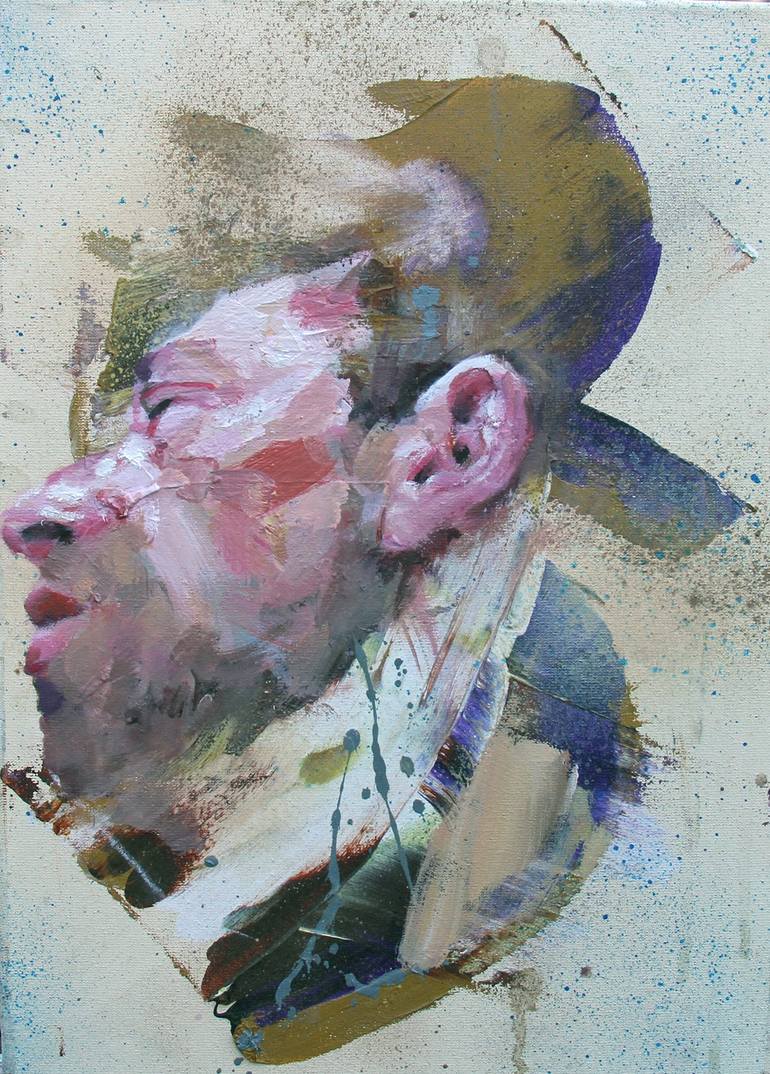 part of a lockdown London series of self portraits. oil, spray paint and acrylic on canvas.
