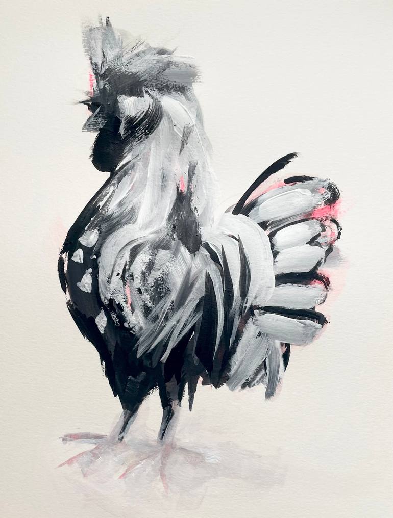 This fancy chicken is my fantasy hen - I dream about raising backyard chickens! It is painted with acrylic on heavy watercolor paper and is signed and dated. It is unframed and ships in a box.