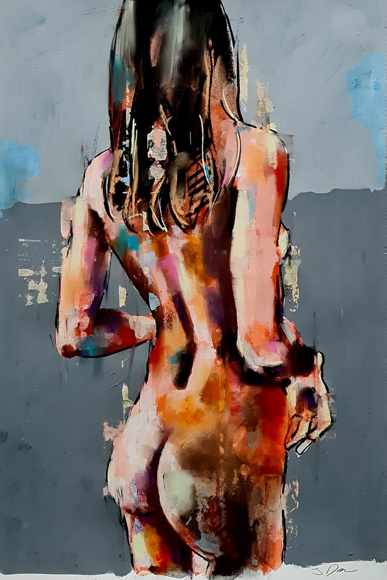female figure 10-5-22 is a medium scale female figure in inks, watercolours, Acrylic and soft pastels on 200gms paper. The use of fluid mediums such as inks, watercolours and acrylics allows for a certain element of chance within the drawing and are produced quickly using expressive marks and stain...