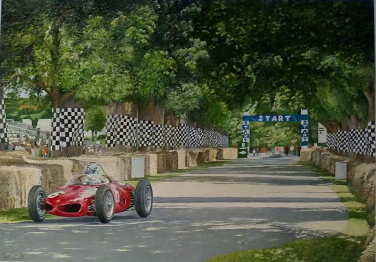 the early days of f1, ferrari dominated the line up with design and engineering ahead of the times with some great success , the likes of ferrari D50s and 156 " sharknose " a true classic of the early post war motor sport , here the sharknose thrills the nostalgia seekers at a show in depictive sty...