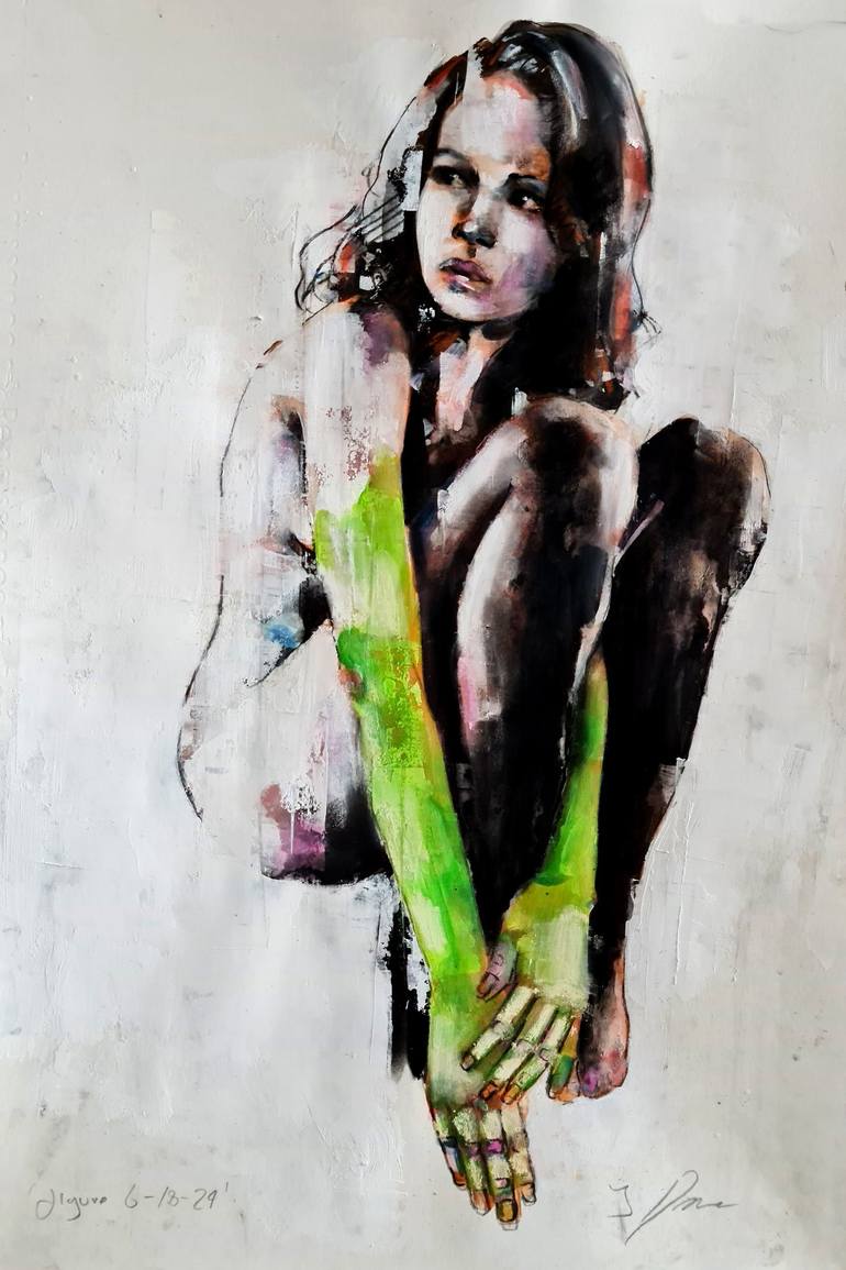figure 6-18-24 is a medium-scale female figure in inks and soft pastels on 200gms paper. The use of fluid mediums such as inks, watercolors and acrylics allows for a certain element of chance within the drawing and are produced quickly using expressive marks and stains, giving them an ‘imperfect’ o...