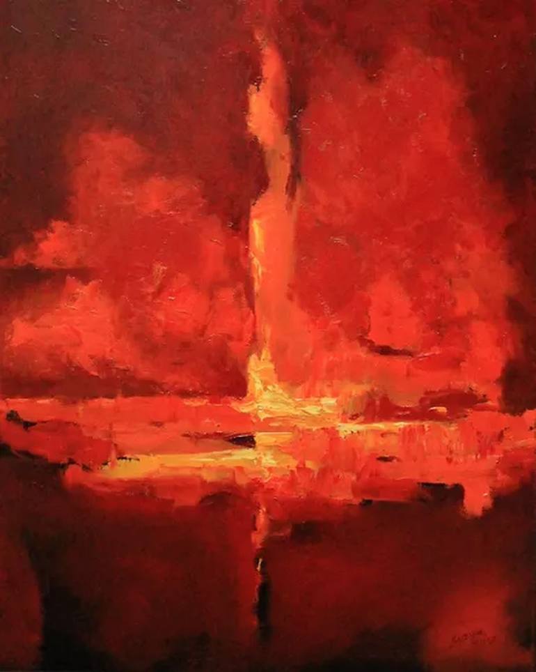 This textured abstract painting is made with knife and brush technique. The contrasts of warm red, yellow and orange give an illusion of burning fire. I love sitting by a fireplace and gaze into the flickering flames. I was inspired by that feeling of warmth when painting this abstract. There is so ...