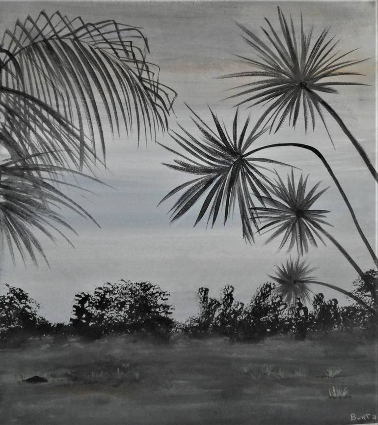living in the tropics, inspires me, painting in a Pop Realism style conveys my message. foggy evening at the beach, inspirational,peace full, meditative