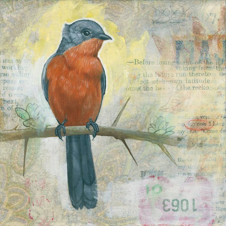 Despite an aversion to cold, Bryan Holland resides year round in Minnesota, where he creates layered oil paintings that are often a mix of collage and other experimentation. His work incorporates realistic painting techniques fused with design elements such as text, patterns, and decorative motifs, which serve to create tension both visually and thematically. Holland holds a Master of Fine Arts in painting from the University of South Dakota, and Bachelor of Arts in art from USF/Augustana College, as well as a degree in graphic design from Alexandria Technical and Community College. His varied experience has helped shape his unique aesthetic. In addition to being an artist, Bryan has also worked as a graphic artist, a college professor, and gallery owner. Most recently, Bryan founded and organized an annual studio crawl event in his home town, and is on the board of a local artist alliance. His paintings have been featured in numerous exhibitions, including solo shows and national juried presentations. Publications include Spectrum Fantastic Art, Hi-Fructose (online), Juxtapoz (online), and New American Paintings. His work is held in both national and international private collections. See more at