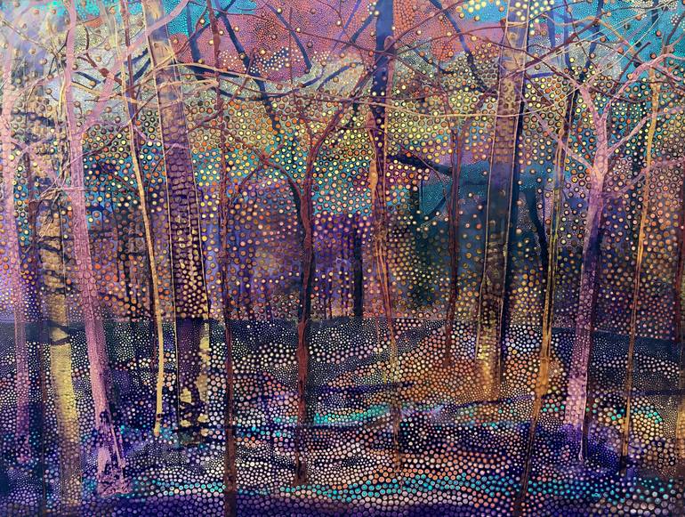 This stoning painting is inspired by the deep energy of the forest, creating a serene peace in the viewer and decorating red and orange colors the atmosphere.