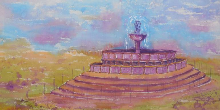 greater representation of the fountain of Perugia, historical monument, made with watercolor on cloth mounted on frame