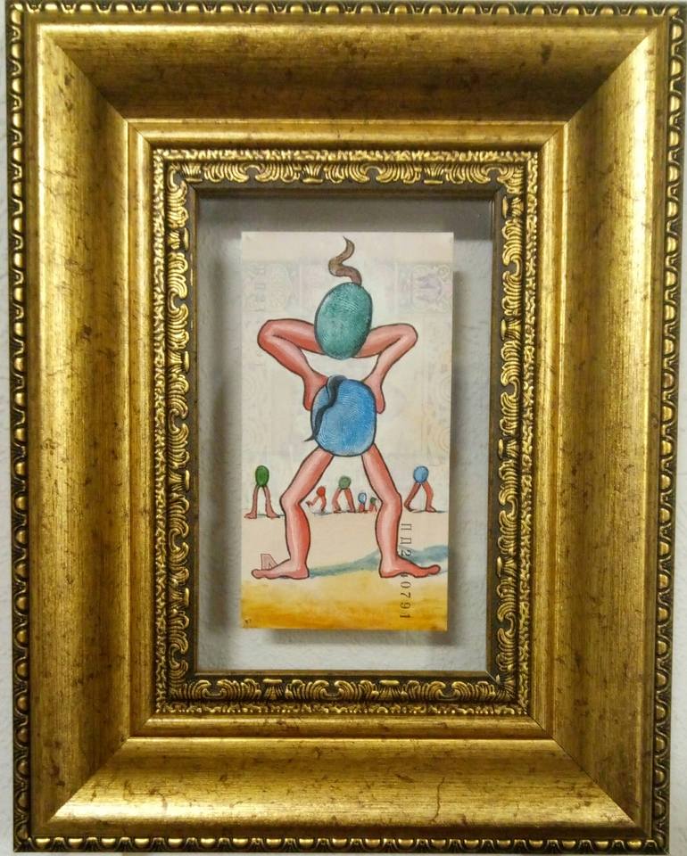 The picture was painted on money. This is a new world direction in art. In 40 countries of the world. My paintings are in the collections of world museums. This is a great investment and investment in contemporary art. This painting is collectible. The picture reflects the philosophy of human influe...