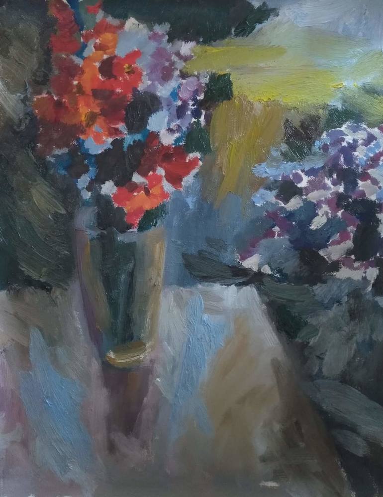 Still life with a vase with gladioli was written from life, surrounded by light-air reflexes.