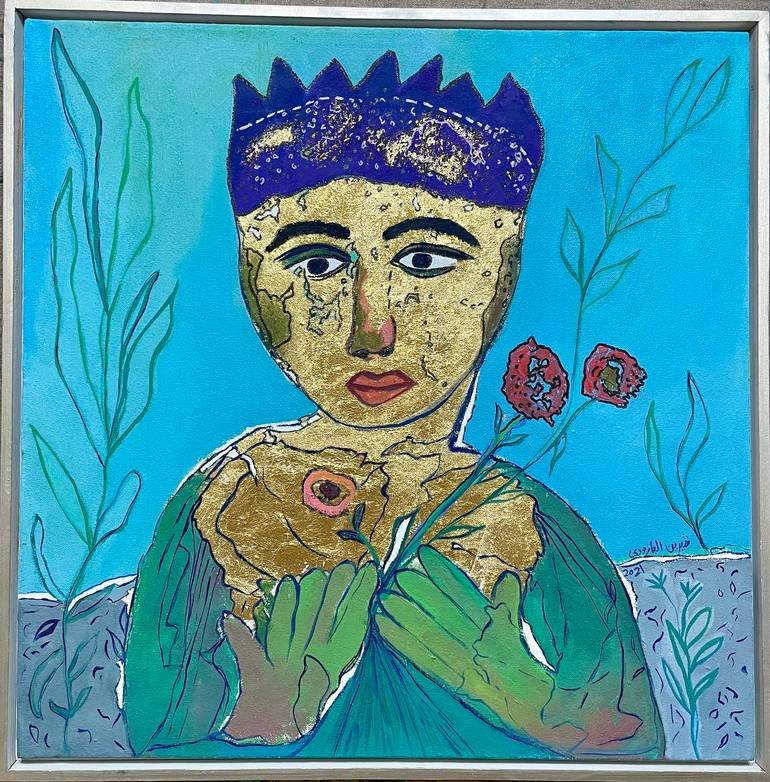 golden face by gold leave to reflect my opinion about angel on our world, 60 x 60 cm, 2021