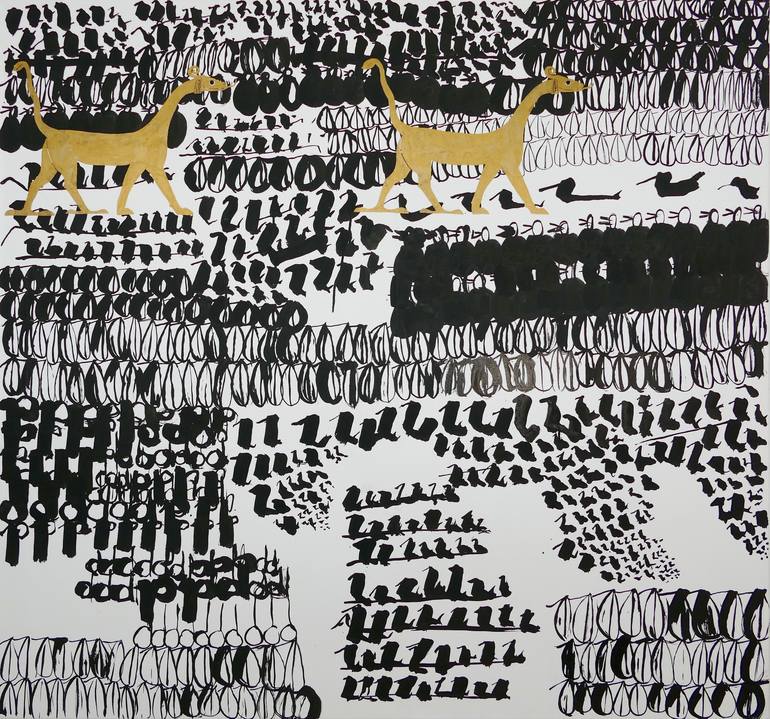 My painting unfolds in a space beyond representation, where signs become memories and forms become carriers of time. I work with a symbolic visual language that does not follow a readable script, yet recalls archaic, calligraphic and mythical systems. I understand these signs as traces of universal experience — fragments of a language older than words. Rhythm, repetition and inner order shape my compositions. As in a musical structure or a ritual framework, tensions arise between movement and stillness. Emptiness within the image is not a void, but an active resonant field that grants the signs weight, breath and presence. Color is used deliberately and sparingly. Earthy tones, gold, black or turquoise condense atmosphere and meaning without imposing themselves. They carry memory, depth and a sense of time. My works do not seek definitive interpretation. Rather, they open a quiet space in which inner images, associations and sensations may unfold. I understand my painting as archetypal expressionism — an attempt to render the timeless, the connective and the unsayable visible, and to direct the gaze toward a shared human depth. Born in Zurich in 1971. Married to Jonathan Southworth, mother of Timothy and Jemima.