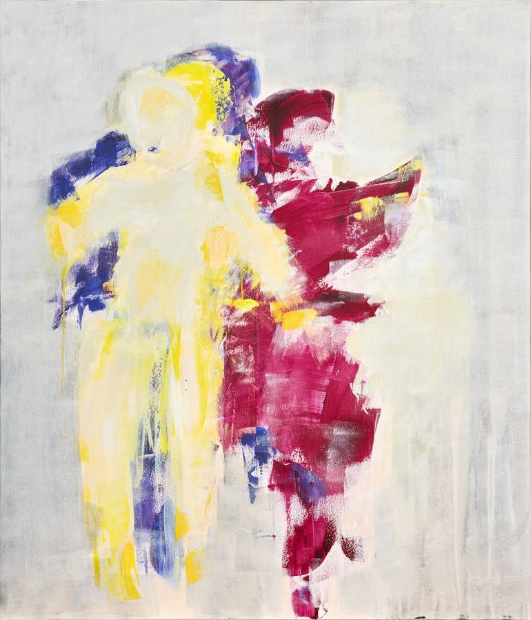 In my artwork, I have worked with acrylic colours to create an expressive and figurative composition. The energetic brushstrokes and bold colour contrasts convey a vivid dynamism. It is the essence of human emotion that I have captured, unfolding between the shapes and the rivers of colour. This pai...