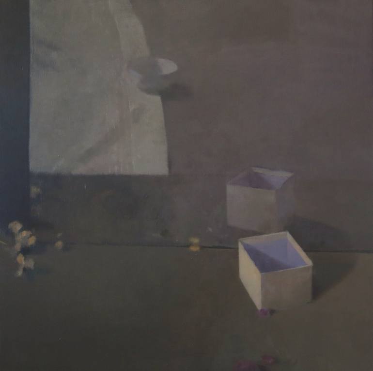 This is probably one the the most minimalist and probably '"metaphysical" painting I've painted at that period. Again, using the objects I liked to paint: box and mirror. I don't like too much to put words on a painting as I think it talk by itself.