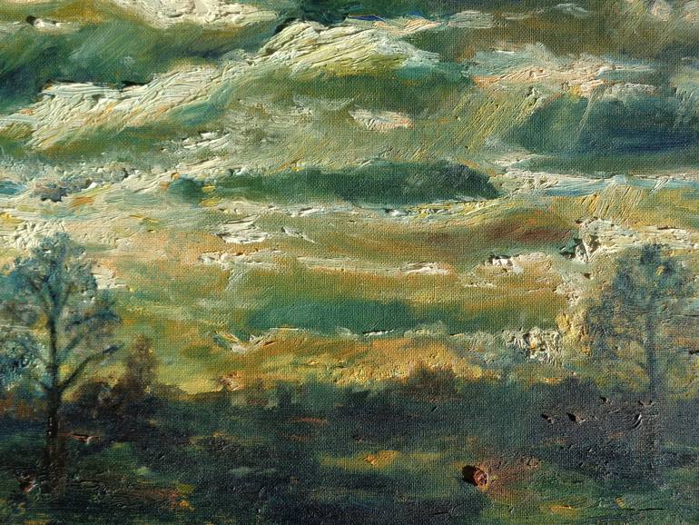 I lived in Eindhoven in the neighbourhood of Nuenen; van Gogh lived here and where he made the potato -eaters ,a well -known painting. The landscape is aliitle bit dark , mysterious; but very interesting to paint ! I love this very interesting painting.