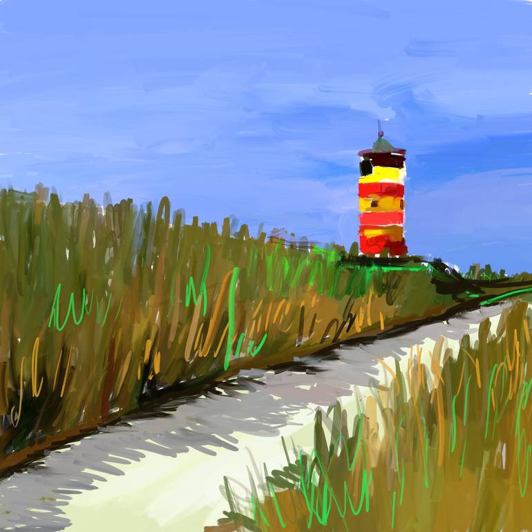 lighthouse from my deep memory lighthouse landscape Modern Impressionism painting. painting of lighthouse Colors expresses the mind and expands our thinking. Some primary colours are used which try to show the image in a different way