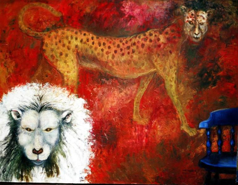 lion, cheetah and blue chair Painting