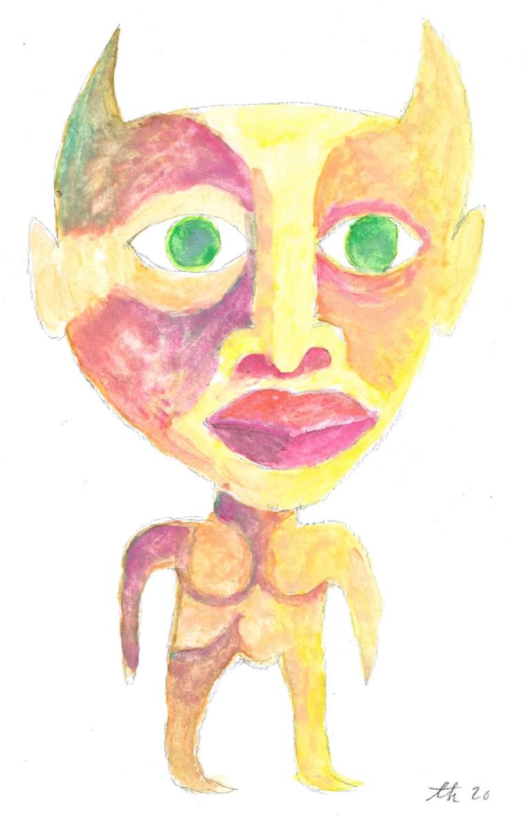 Fun little character watercolor. Very small size. Would be great on the wall. Have a look.