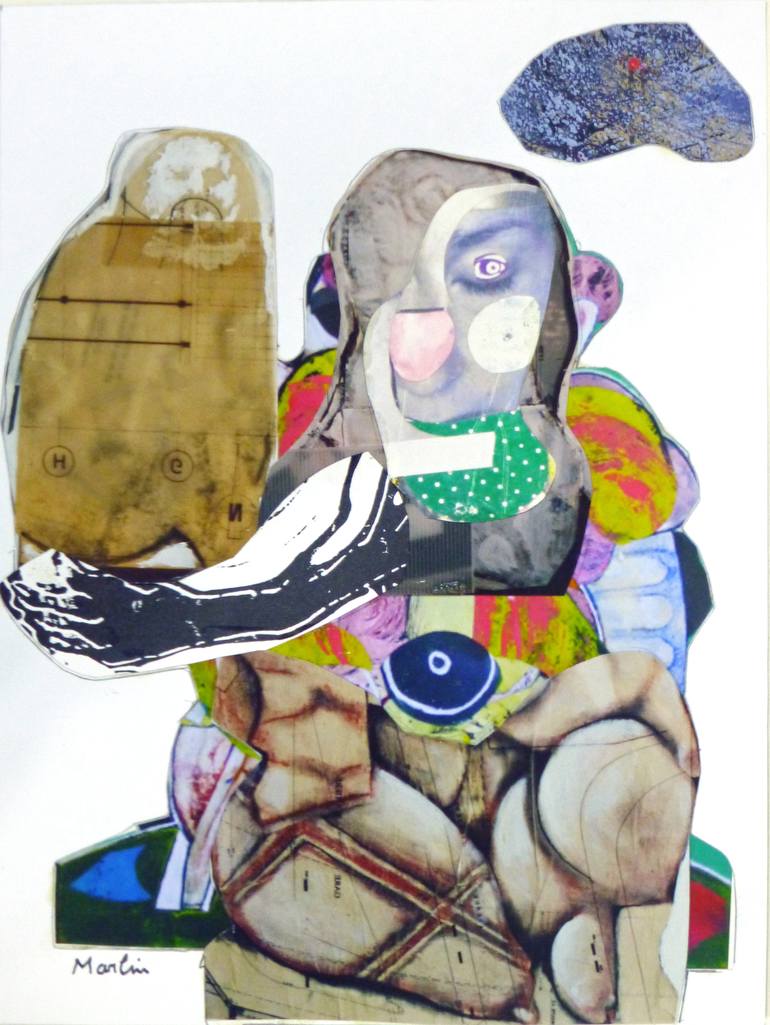 On n'est pas obligé d'être attiré par ces superpositions de rondeurs, il n'en est pas moins vrai qu'elles interpellent ! Ces monstres difformes d'un réalisme saisissant sont posés à l'huile ou à l'acrylique sur toile. Mais ce n'est pas tout, loin de là. L'artiste joue les superpositions, bien visibles quand on se place sur le côté de la toile et que les reflets de lumière accusent les épaisseurs. Utilisant la technique du collage qui se devait, à l'origine, de stimuler l'invention créatrice, Marlin emploie tout ce qui lui tombe sous la main - des bouts de tissus, des fragments de papier calque ou de papier-patron couture - qu'il découpe, compose, mélange, réhausse de couleurs, voire de morceaux de radiographies, fémur, colonne vertébrale, savamment placés à certains endroits pour créer des ombres. Le travail de Marlin, très répétitif, ne manque pas d'attirer la curiosité comme au cirque on s'amuse au spectacle du nain à bosses multiples faisant sur la piste ses pirouettes. On songe aussi aux poupées de celluloïd et de chiffon de notre enfance si souples qu'on pouvait en contorsionner sans risque bras et jambes et même zieuter, un peu sadiquement, les sombres points d'ancrage où se fixaient les membres. Tous ces personnages "impitoyables et graves" constituent un univers peu banal, parfois effrayant nuancé toutefois par une palette chromatique légère et raffinée adoucissant le propos. Pascal Marlin nous semble être un tendre gonflant ses fantasmes pour les mieux apprivoiser ! La lettre mensuelle Les chroniques de Colette Bertot / Février 2005 Pascal Marlin. Bizarre... Vous avez dit "bizarre"? A la Contrast Gallery de Bruxelles