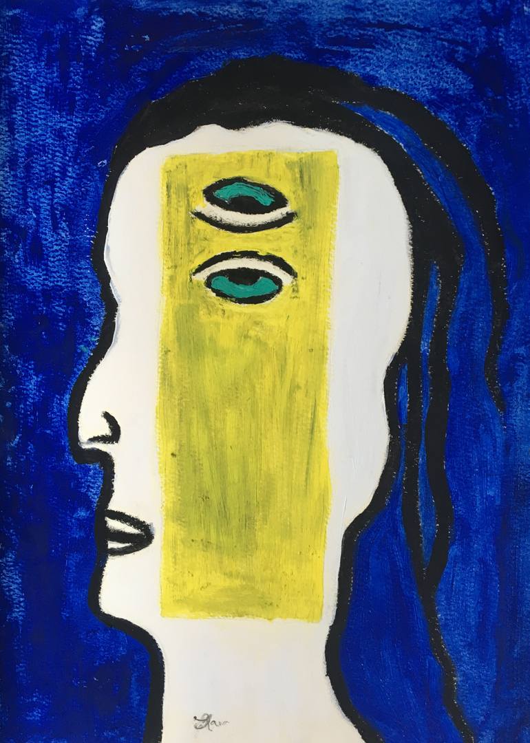 look at yourself oil painting. eyes look at inner self.