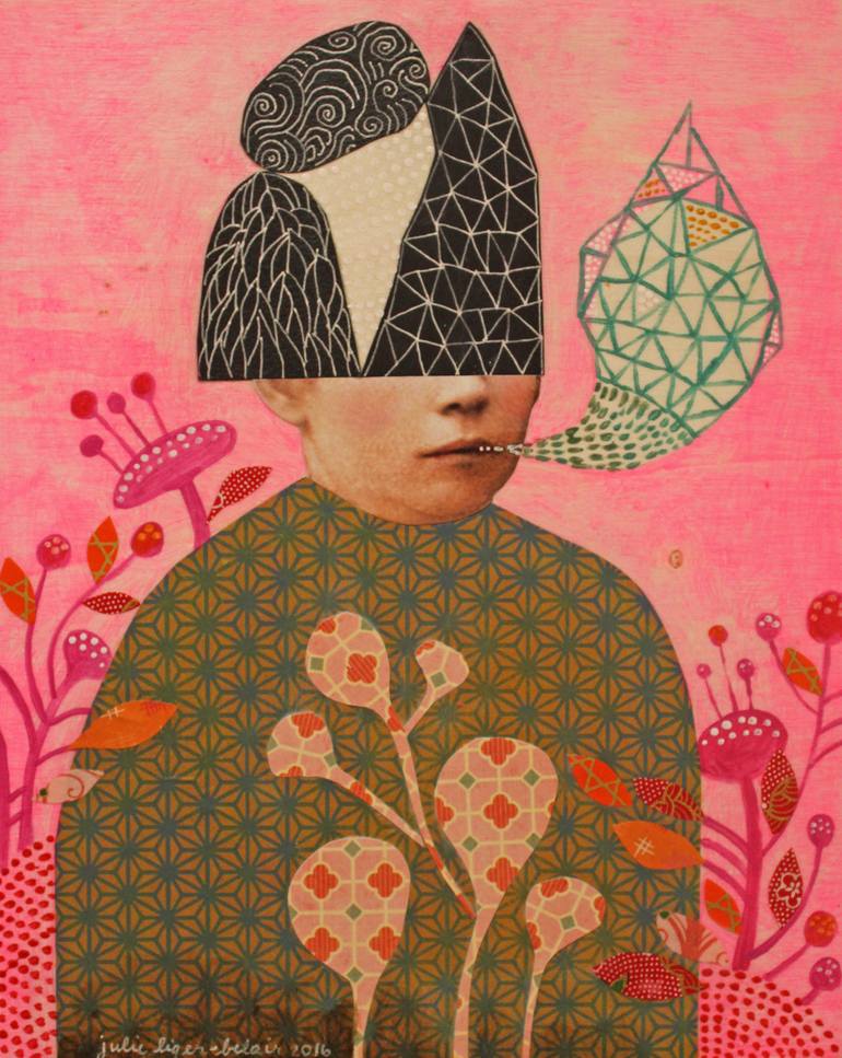 Fairy tales, legends, dreams and the surreal worlds they evoke have always been a part of the human experience; a way to make sense of our surroundings and explain our fears. As a child these captured my imagination, weaving themselves into the fabric of my personality. Because of this I am today a collector at heart, constantly collecting fragments of ideas and objects, each with their own little stories to tell. Combining them in different ways in my work, they form new narratives and meanings. I create mixed-media works using acrylic paint, wood, metal, Japanese paper and found images. I use Victorian era photographs I’ve collected over the years, finding that these, in of themselves, evoke imagined histories and feelings of nostalgia. Their serious and stern faces provide an ironic counterpoint to the humour and levity I try to inject into the work. Alternatively, my pieces make evident a playful fascination with all forms of iconography, creating alter-pieces for everyday life, making sacred of the mundane. Julie Liger-Belair lives in Toronto, where she attended the Ontario College of Art and Design (now OCAD University). For the past 20 years, she has participated in group and solo shows in Canada, the United States and Europe. When not doing her art work she likes to go camping with her partner, their three creative kids and little black dog, Frida.