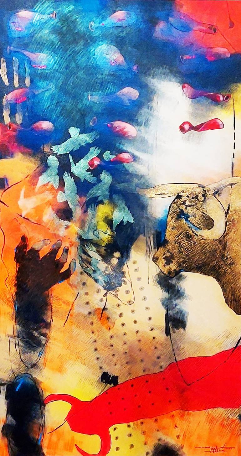 I am a painter, video and installation artist. In my painting I am obsessed by the human movement and their quest for freedom, while in my mixed media works and installation, I apply assemblages to create sculptural states that transcend simple two-dimensional art forms; through the studied and experimental use of collage I combine color, calligraphy, textile, and various textural media to explore issues of gender, independence, freedom, space and passage of time. my art is inspired by the society in which I live and the economic and social situation and the political community in which we live and through the hopes and the joys and sorrows of the people and by reading newspapers or watching the media and was inspired by my work from all that surrounds personally considered my art form and my personal view in what it takes personally and what motivates me to do my job is my duty towards national and then about myself and my conscience artwork And adopt my art on the color, which is energy and movement, including the so-called (action  Painting) and adopted much on the icon in the shape and meaning as adopted also on the type of Surrealism in meaning and expression as well as transparencies color and the strength of the lines in the expression also used the human element in the expression of the concept of artwork. The message that I want to achieve in my career through my art is the new vision of all that surrounds us and the expression of the events or things through a different perspective and to develop techniques work of art both in terms of the idea or mode of expression and the message that I work for it is monitoring the political and social development in the community in which I live and the impact on other communities. And art in general is an enlightenment and educational illuminate the public awareness and insight facts and reality and reveal to him the imbalance in society and art has a very important role in building a democratic culture is a culture and conscience of society.