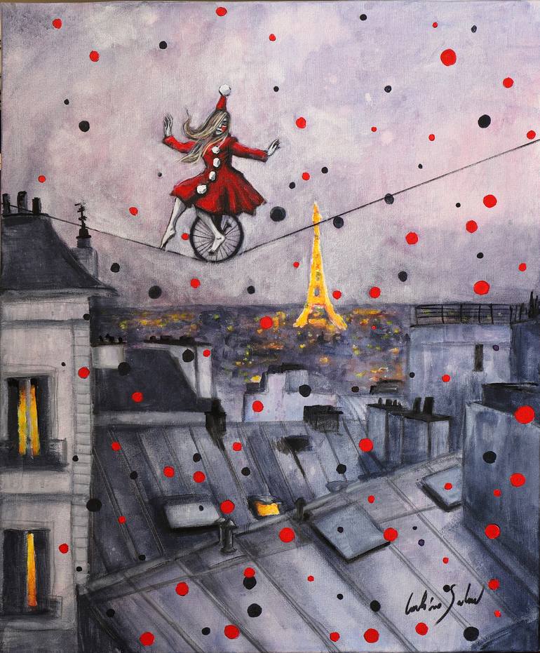 From my serie "Urban Malabarism" Dream skies and fantasy with circus characters over modern cities.