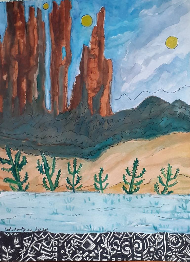 the stain of water color on my paper reminded me of a landscape from a desertic zone in America... does it really exists? water and desert together? I wish!