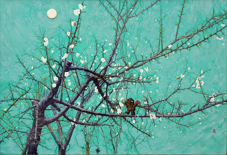 This work is not a print. It is a work painted directly with oil paints. The plum blossoms in full bloom announce the arrival of spring and offer a friendly greeting to the warm spring buds. Hello, nice to see you again~