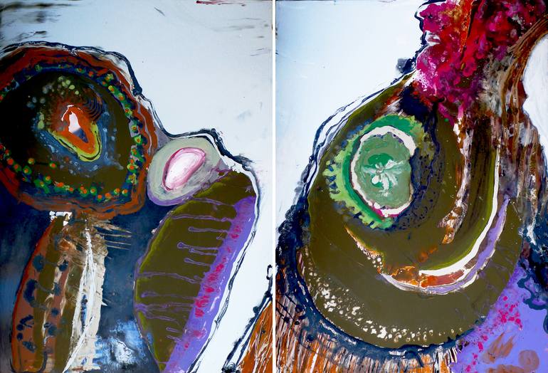 Diptyque 2x (70x100cm), Peinture sur rhodoïd, prix œuvre livré en rouleau. Possibilité de l'encadrer en caisse américaine, me consulter alors pour le prix. Sujet : Nous ne sommes rien de plus qu'une molécule, puisque nous sommes une communauté de molécules. Diptych 2x (70x100cm)Painting on rhodoid...