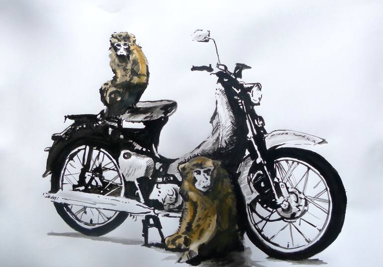 "monkey" by soso kumsiashvili acrylic on paper 60x80 2016