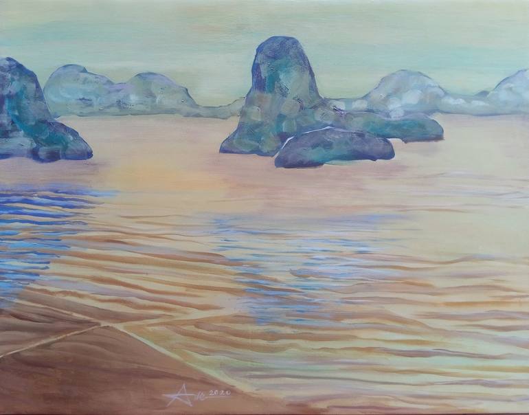 I paint mountain by the Ha Long bay one of world heritage in Vietnam landscape.