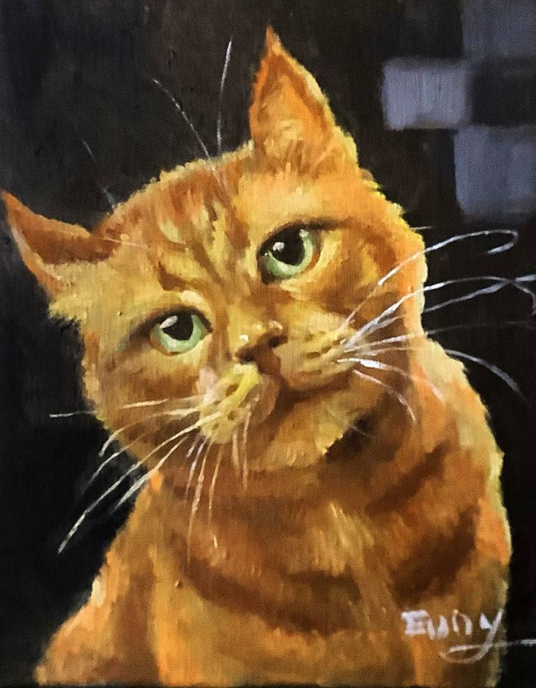 I depicted the gaze of a cat in oil painting. The oil painting successfully captures the cat's attentive gaze, using colors and textures to convey the curiosity and wariness in its eyes. Additionally, the psychological portrayal conveyed through the cat's gaze draws the viewer into the cat's inner w...