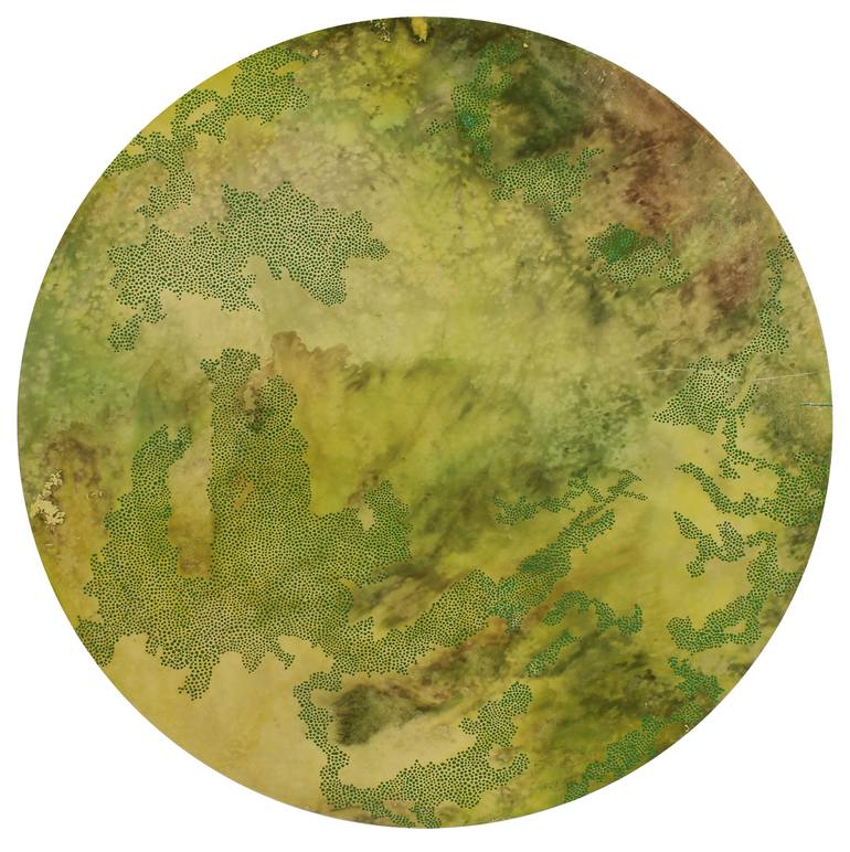 The serie 'night thinker', all started by chance. It was summer, so I thought ‘right, I’ll take the canvas outside and make the base there’. I threw liquid paint over the unprepared canvases and left them outside for a few days. Several times during this proces of drying I turn and shake the canvas....