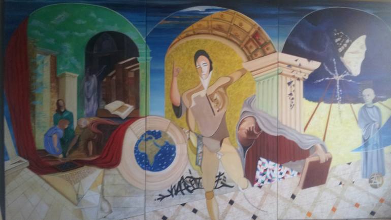 Triptych 3,42 meters × 1,95 meters which refers to ancient philosophy
