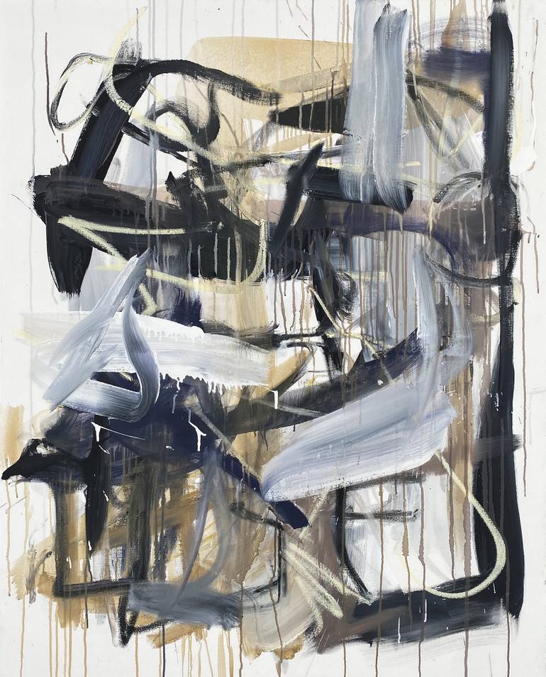 An active painting about depth and movement. There is an element of chaos to the piece.