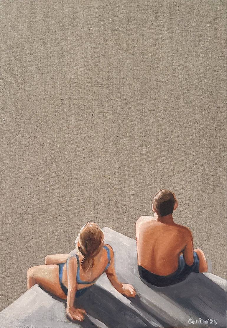 🌊 Title: Сouple of swimmers 🖼 Size: 13.8 W x 19.7 H x 0.8 D in 🌈 Description: ORIGINAL PAINTING, not print! The artwork was painted by me by hand with oil paints on stretched canvas. I work only with high-quality oil paints. Good materials help to prolong the life of the painting for as long a...