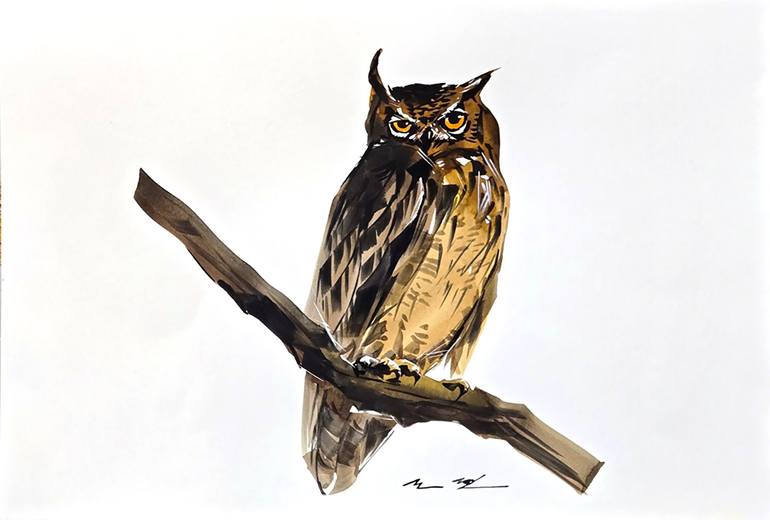 Owls are animals that symbolize good fortune, such as wisdom and luck. This work is a simple drawing using watercolors.