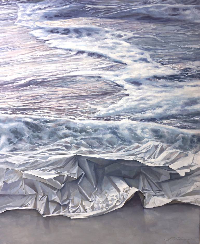 In my work I explore the fusion of reality and dream world by contrasting the raw power of the sea with the fragility of folded paper. With oil paints I capture the deep emotionality of the moment. This composition is intended to invite the viewer to reflect on the duality of permanence and transien...