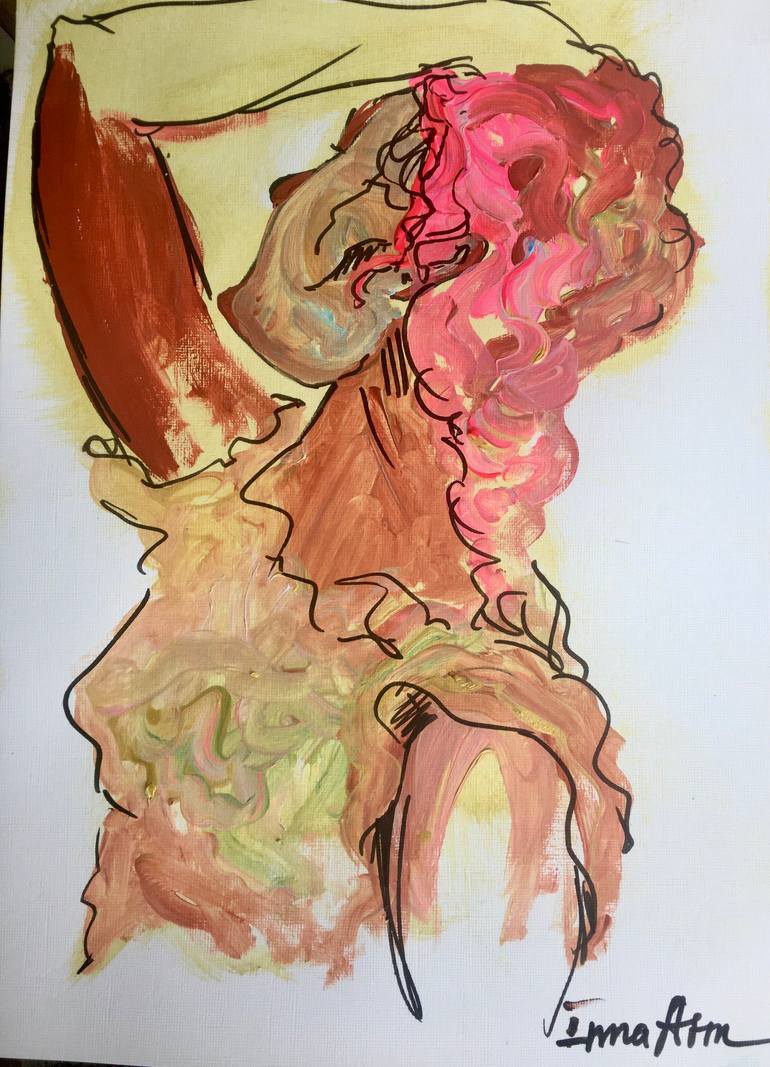 This original artwork, "pink woman improvisation", is a unique piece born from a spontaneous burst of creativity. An emotional sketch, it evolved from accidental acrylic stains into a lively and interesting abstract picture. The artist saw the image of a woman emerge and emphasized her form with a m...