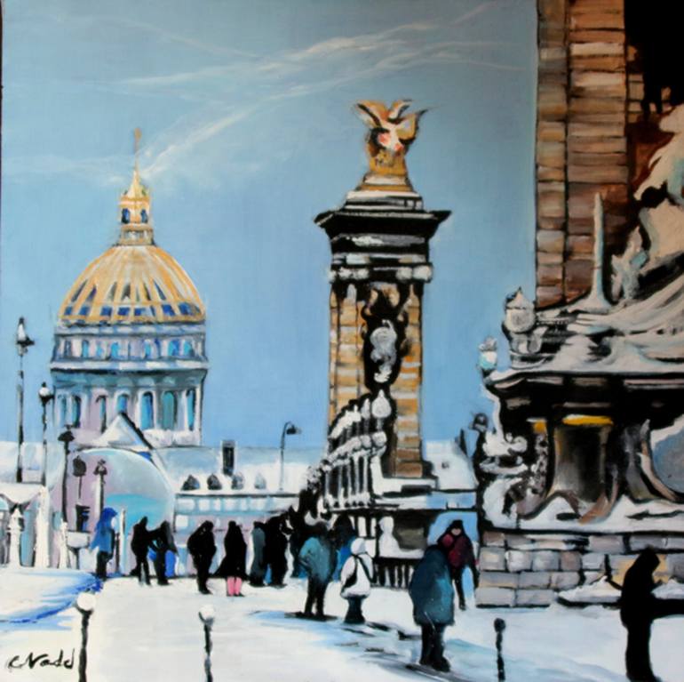 le charme du pont Alexandre 3 a Paris un jour de neige et de ciel bleu