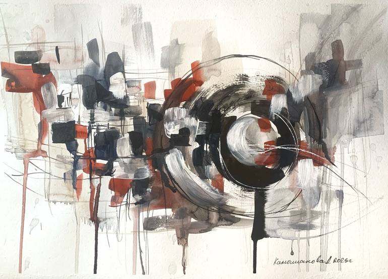 "Crater" is an abstract artwork that mesmerizes with its captivating composition and symbolic meaning. Created using a mix of watercolor and ink on paper, this painting draws attention to the concept of a crater, positioned prominently on the right side. The viewer's gaze is immediately drawn toward...