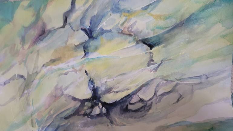 Nature inspired the work. I hope the viewers can feel the flow of water and watercolor in contrast to the solidity of the stones and rocks.