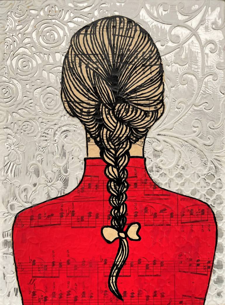 Martina Niederhauser paints depth, feeling, and beauty into her portraits of women. She seeks to share without words, painting the canvas as a “diary written in colors” with communicative forms and conjunctive lines: all expressing her life and her world. Inspired by line, Niederhauser paints on a highly textured patterned backgrounds composed of vintage book pages and sheet music. The collages which make up her backgrounds enhance the aged character of old paper from all over the world. Depth is first created in her backgrounds, then brought forward by varied layers of painting techniques as Niederhauser incorporates watercolor, pastel, oil, and gouache and more into her primarily acrylic portraits. Niederhauser’s major themes are life, emotion, feeling and relationships, and impactful moments and events from her inspirational life. Born 1977 and raised in Switzerland, Niederhauser has worked to become a full-time artist after living across three continents (Europe, Asia and Northamerica) and working in the corporate marketing world. When asked what she would do if she couldn’t be an artist Niederhauser says: “I would ask myself what is preventing me from becoming one.” With many successful years of work as an artist, including three studio years in Shanghai and three years in Chicago, Niederhauser's now based in Sarnen, Switzerland with her husband and her teenage daughter.Collected throughout the World, Niederhauser’s paintings can be found in many public, corporate and private collections. Her artwork has been shown in Affordable Art Fairs in London, Amsterdam and Brussels and solo and group exhibitions and art fairs in Innsbruck, Berlin, Sylt, Munich, Frankfurt, Vienna and all over Switzerland.