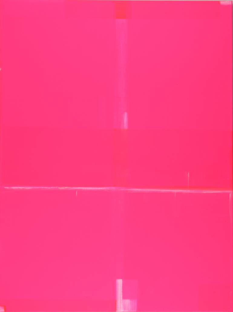 red in front of white room XIX This is one of the paintings out of the series "Farb Räume", "Color Rooms" that started 2009, these are luminescent abstract, acrylic works on canvas. The paint is self produced with special pigments bonded into a certain consistency that punctuates the glow effect. Th...
