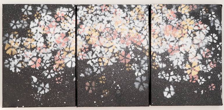Title "sakura" spray paint painted on canvas size each 227mm×158mm x3 Ready to hang unique original Information Color Project Art management