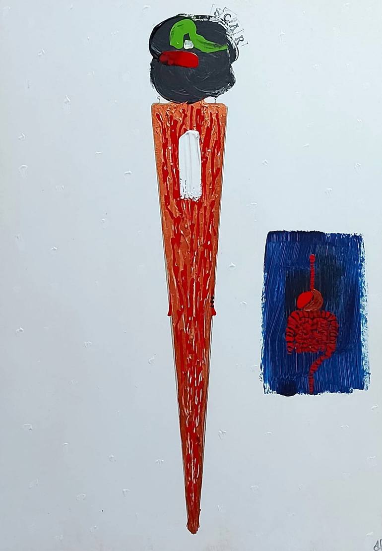 The Beauty of Burning In ABBA’s work, burning becomes both sign and language. Within this chimeric and hypertrophic figure, soot rises to a spiritual substance — a residue, a testimony of an existence that burns. Matter itself becomes memory, a reflection of a personality long consumed beneath the surface. The artist invites a suspension: one feels gently led into a muffled, weightless space, where thought and body drift between dream and trance. It is a pop and dissonant world — that of contemporary society — which demands that human beings react, or pretend to react, to the endless wars that surround them. In this fragile, interior landscape emerges a slender figure, a semi-empty shell, almost a mask — a symbol of invisible struggle, of an intimate confrontation with oneself. ABBA’s pictorial research seeks a beauty that hurts: an incomprehensible, elusive, painful beauty. His canvases, scarred by burns and voids, narrate a mark that changes and twists but never disappears. It is an existential déjà vu repeating endlessly, an obsessive movement that multiplies the self into countless reflections, all trapped within the mirror of the subconscious. Through the reworking of images drawn from media streams — computers, television, social networks — the artist composes a visionary catalogue of humanity in decline. Faces and bodies are deformed, scorched, emptied, until they become relics of contemporary consciousness: fragments of humankind dissolving into its own representation. The origin of this poetics stems from a single image: the shadows of vaporized bodies imprinted on Hiroshima’s walls. Immaterial remains of erased presences — silhouettes burned by the explosion — become the visual echo of surviving souls. In them, ABBA recognizes the paradox of survival: disappearance as the ultimate form of memory. Within his language, fire holds a central role — both destruction and rebirth, erasure and testimony. It is the artist’s primal gesture: a flame that burns the surface, yet becomes the very medium through which life transforms. In fire, everything is consumed — and everything is revealed.