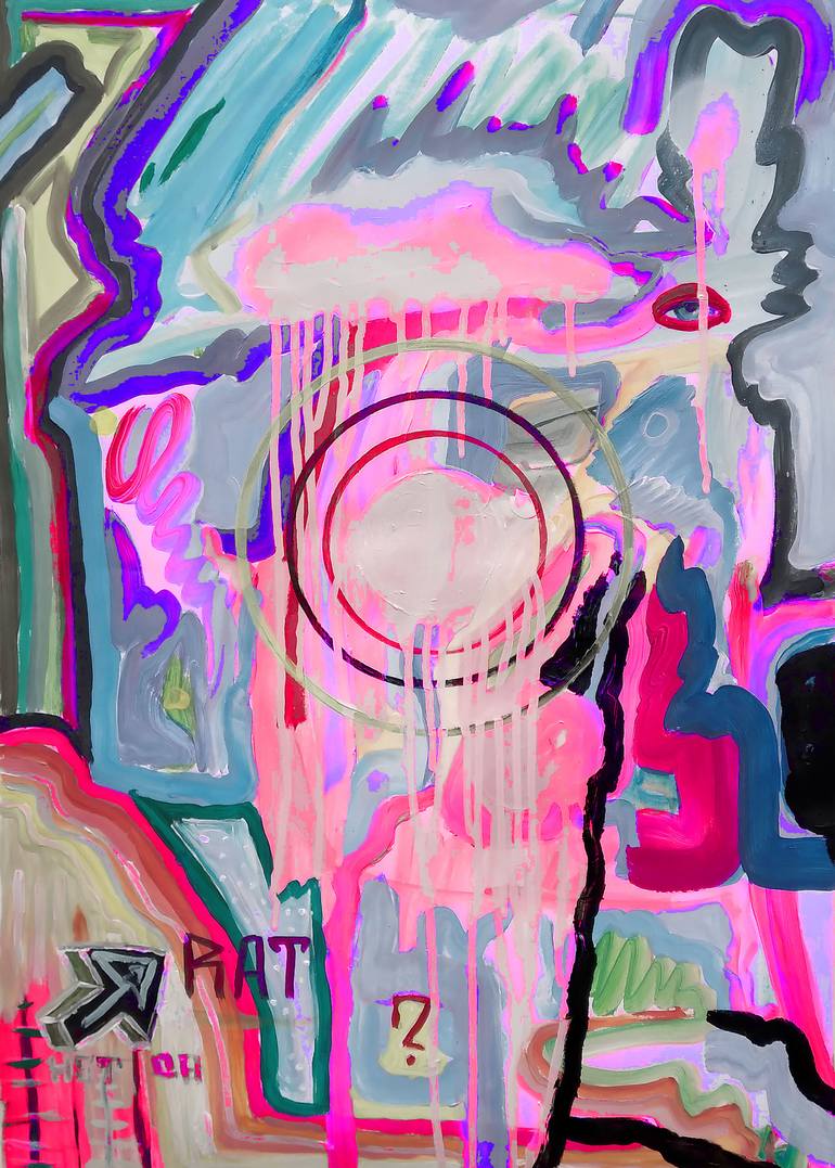 Painting on paper, acrylic, aerosol 11,7×16,5 has a smooth texture