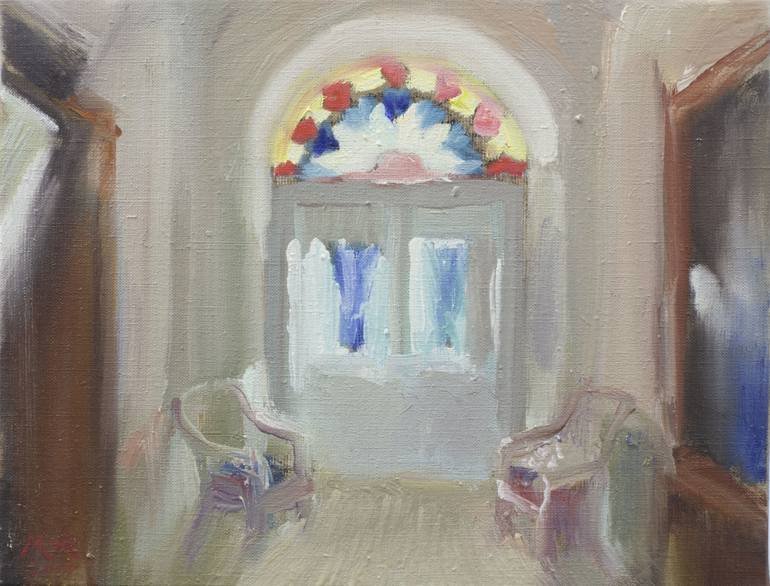 stained glass 2, belongs to the series of paintings inspired by spaces, rooms and in the book by Gaston Bachelard,Poetic of space They are small format 27 x 35 x 2 cm looking for an intimacy with the viewer. The style is realistic, it is a paint sketch.