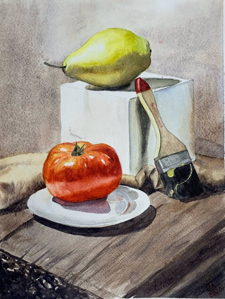 still life with pear and tomato (2) Painting