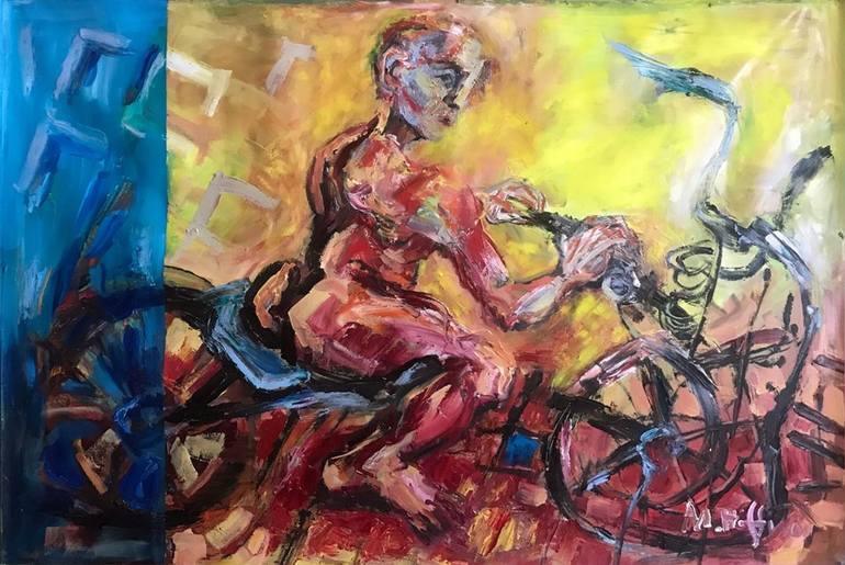 Man riding a bike/motorbike speed rush bright colours blured shapes clear mind